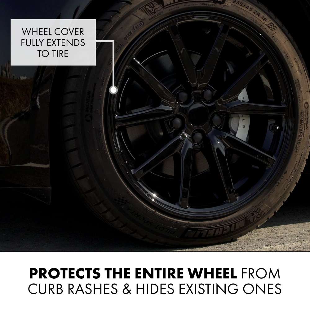 Instantly customize the appearance of your Tesla Model 3 with these 18" wheel covers. Easily change from a dull dark gray to a glossy black finish on your standard 18" Tesla Model 3 wheels. Each kit includes 4 hubcaps that can be quickly snapped into place, and they protect against further damage from curb rashes due to their extended coverage on the edge of the rim to the tire. With this easy-to-install kit, you can effortlessly and quickly enhance the look of your 2017-2023 Tesla Model 3.
