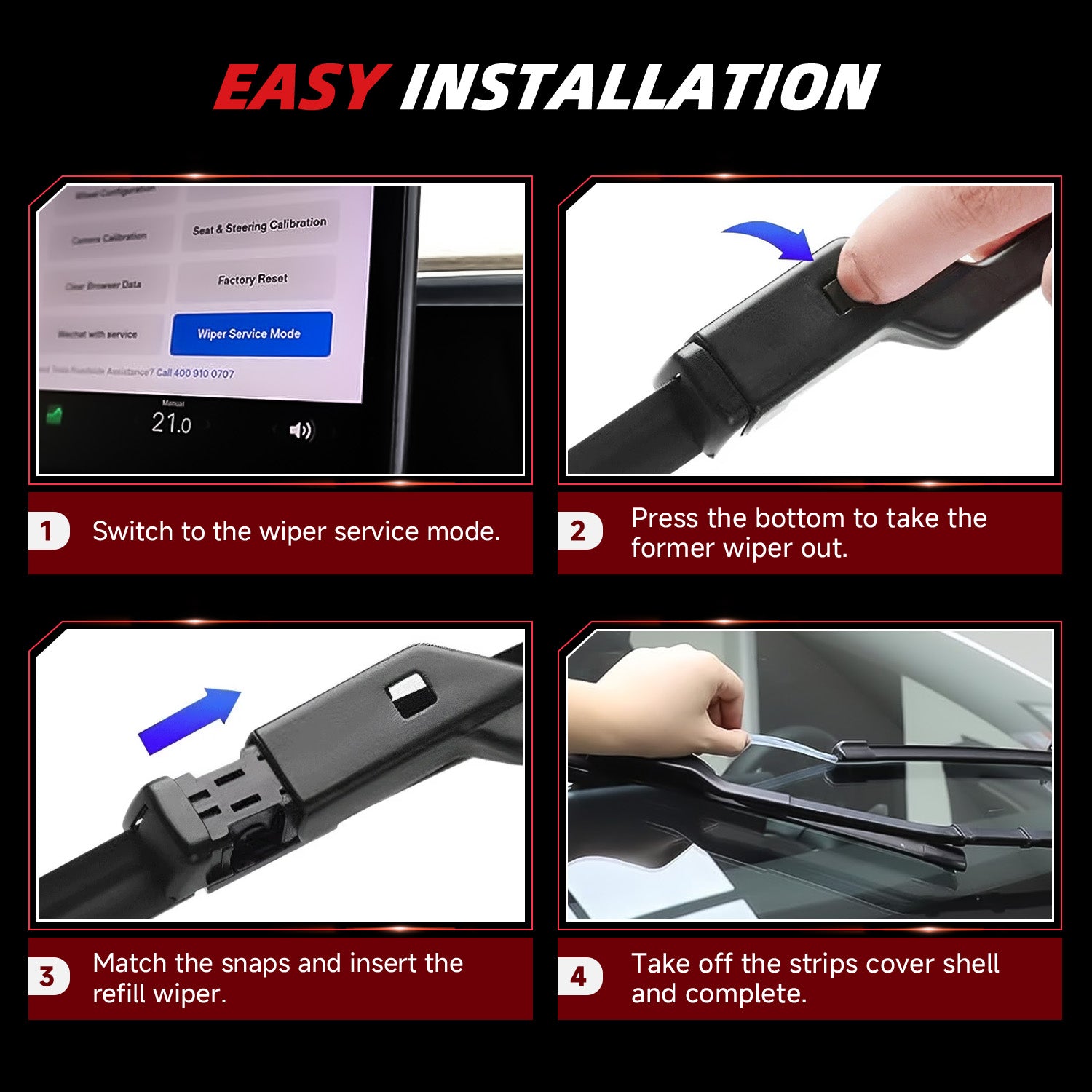 - OEM Compatibility: These wiper blades are OEM-compatible, guaranteeing superior quality and performance for your Tesla Model S.