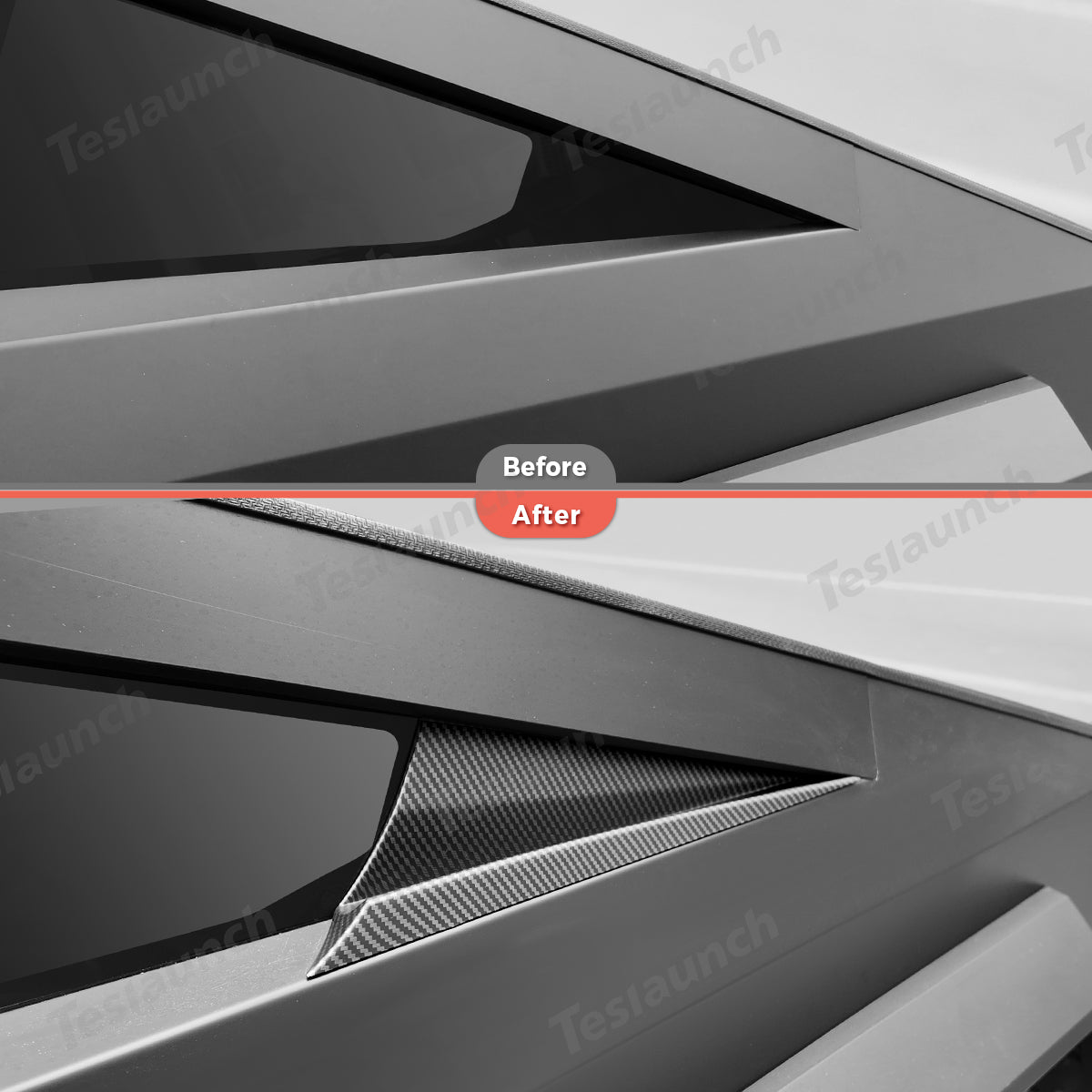 • Aesthetic Enhancement: These spoiler covers enhance the visual appeal of your A-pillars, giving your Cybertruck a unique and aggressive look that stands out on the road.