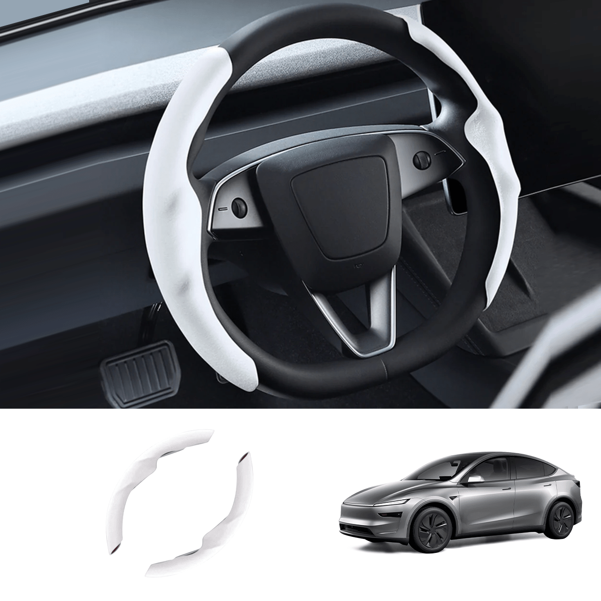 Upgrade your Tesla Model Y Juniper 2025+ with our Anti-Slip Suede Steering Wheel Cover. Designed for a precise fit, this cover enhances both the appearance and functionality of your steering wheel. Crafted from premium suede material, it offers superior comfort and grip, protecting your steering wheel from everyday wear and tear while adding a touch of elegance to your vehicle's interior.