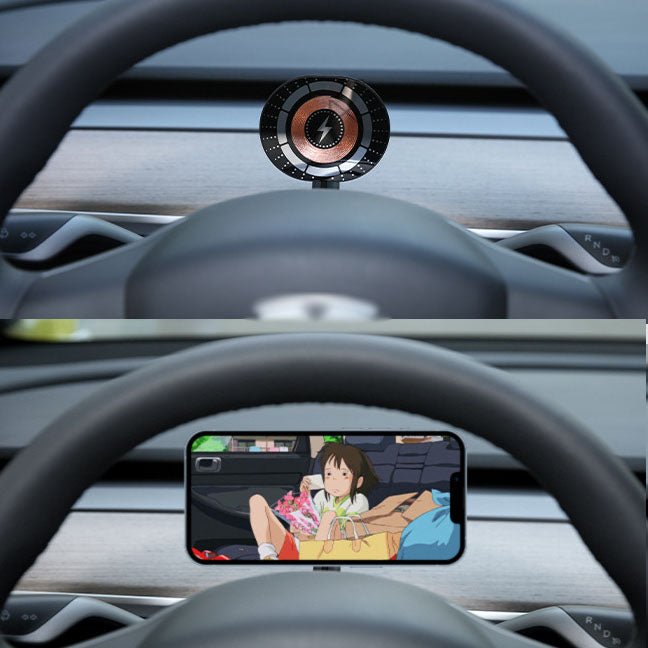 Experience the ultimate convenience with this innovative steering wheel magnetic MagSafe wireless charging phone holder. Designed specifically for Tesla Model 3 and Model Y (2017-2024), this premium accessory combines powerful magnetic mounting with fast wireless charging, keeping your iPhone perfectly positioned and fully charged while you drive. The steering wheel mounting position provides optimal viewing angles without obstructing your dashboard or windshield.