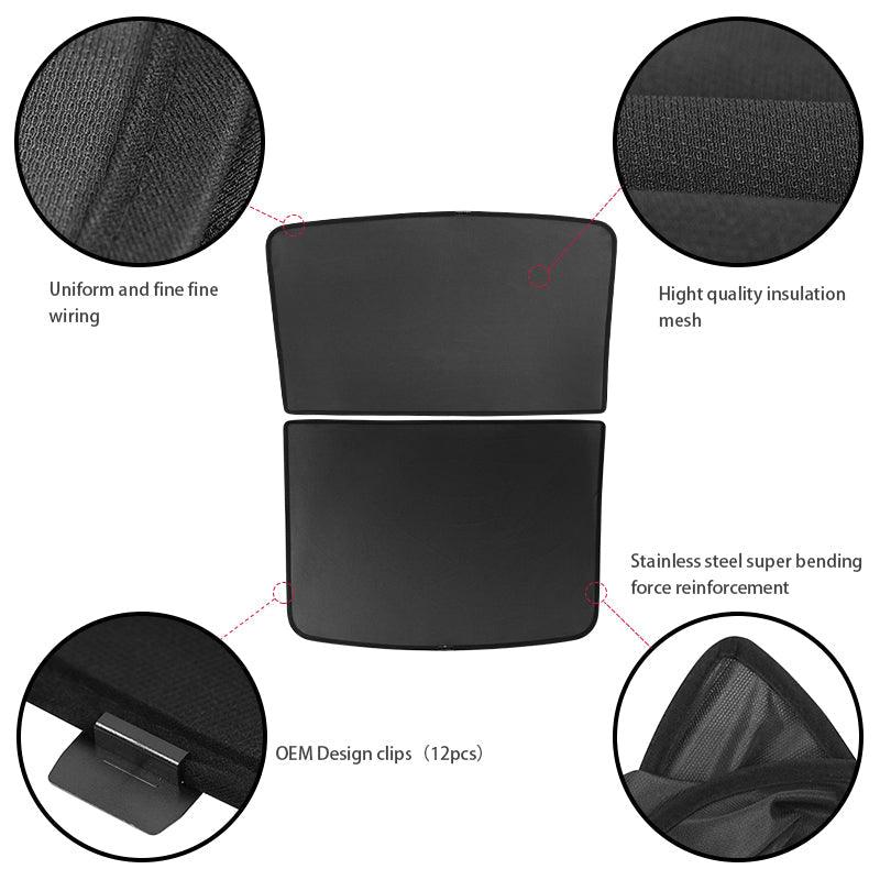 Beat the heat in your Tesla Model Y with our premium split glass roof sunshade set. Engineered specifically for 2020-2025.03 Model Y's panoramic glass roof, this innovative two-piece design provides superior UV blocking and heat insulation while maintaining headroom and allowing customizable coverage—keeping your cabin cool and comfortable even on the hottest days.