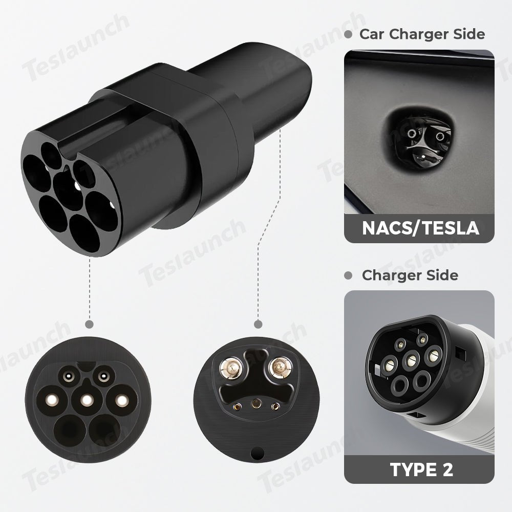 Unlock Europe's extensive Type 2 (Mennekes) AC charging network with our premium Type 2 to Tesla/NACS adapter. Designed for all Tesla models including Cybertruck, Model 3, Model Y, Model S, and Model X, this AC-only adapter enables seamless charging at thousands of European Type 2 charging stations. With 32A current capacity, IP55 weatherproof protection, and compact user-friendly design, it's the essential accessory for Tesla owners traveling or living in Europe who need to access Type 2 AC charging infrastructure.